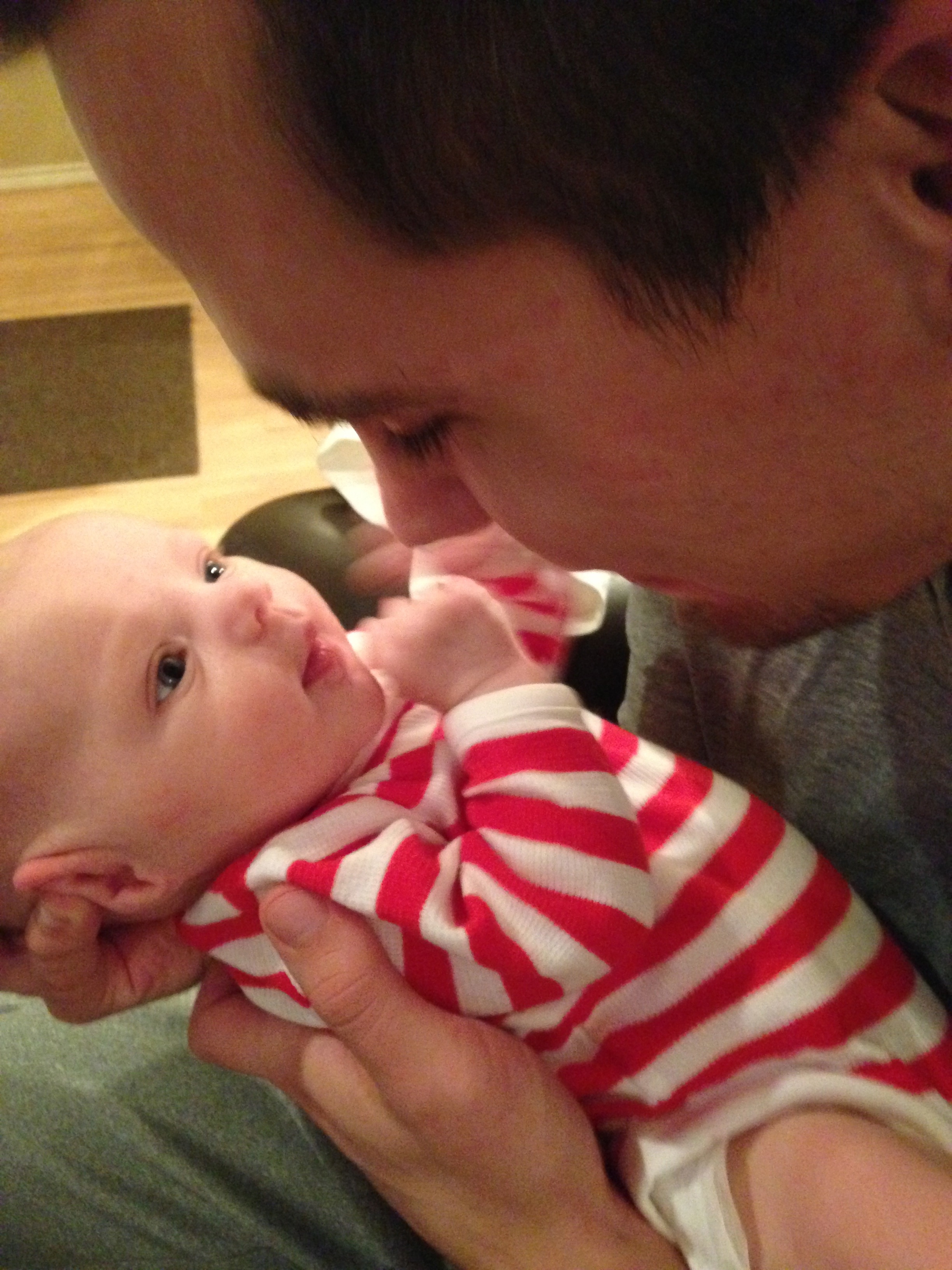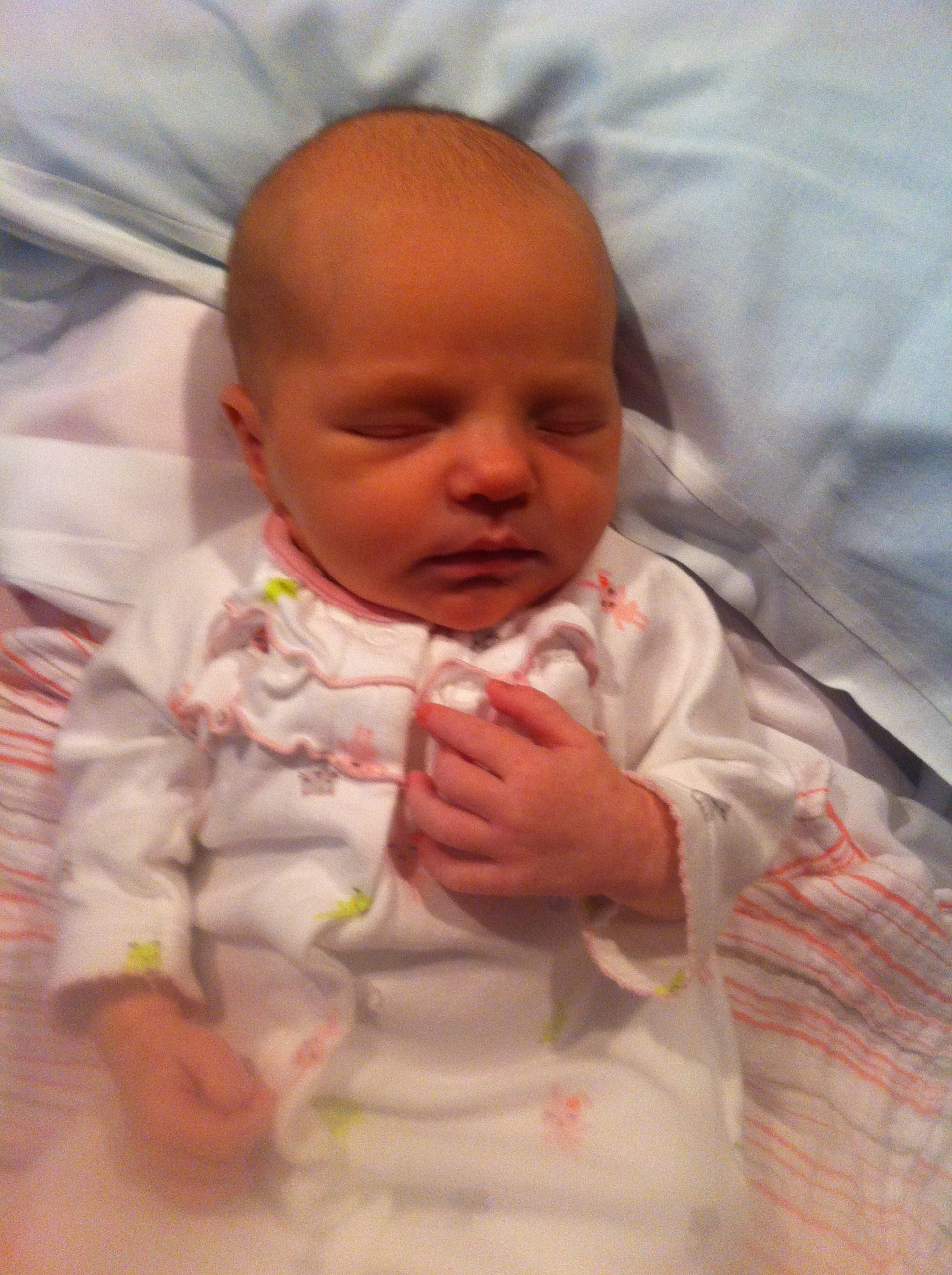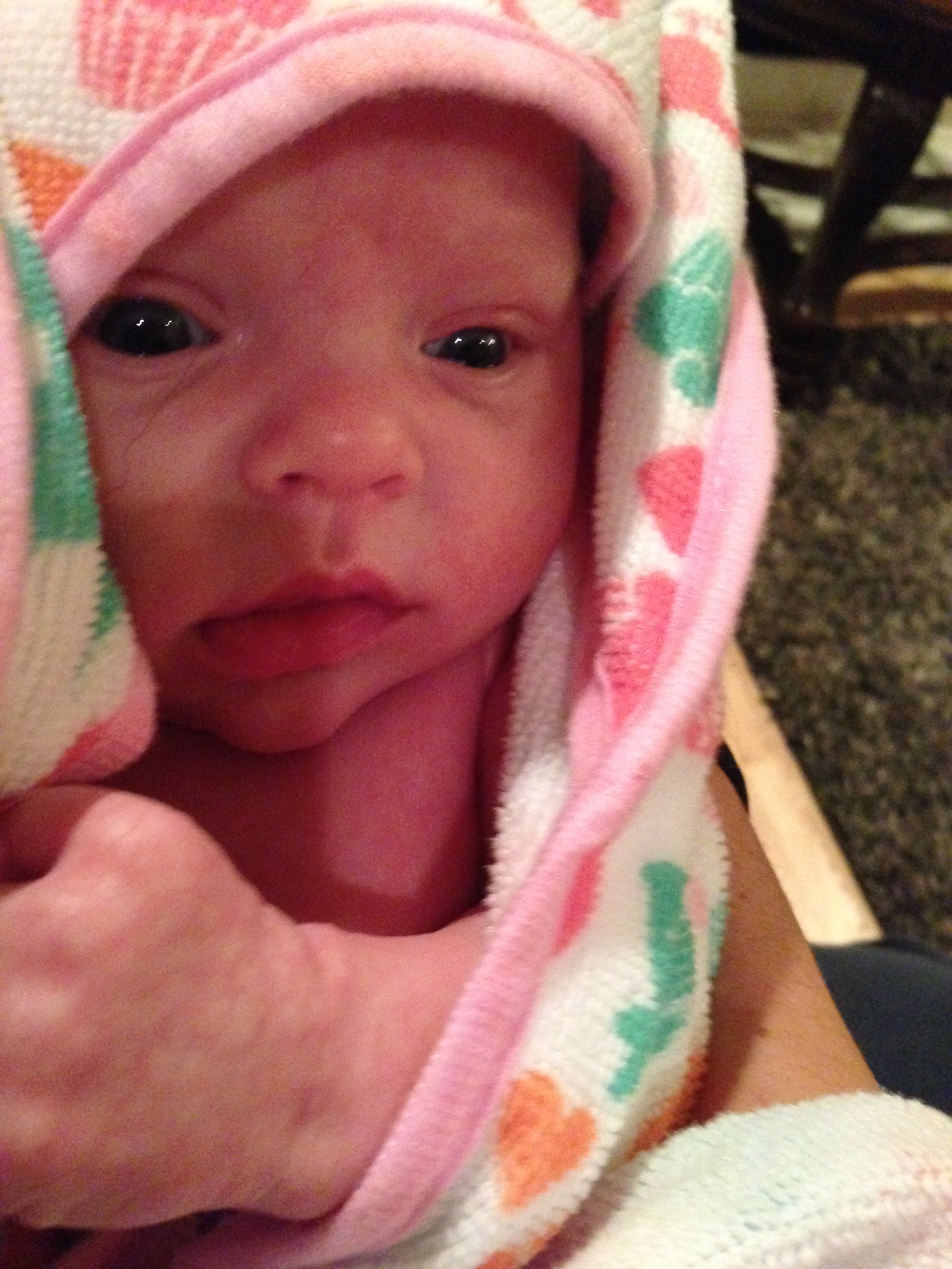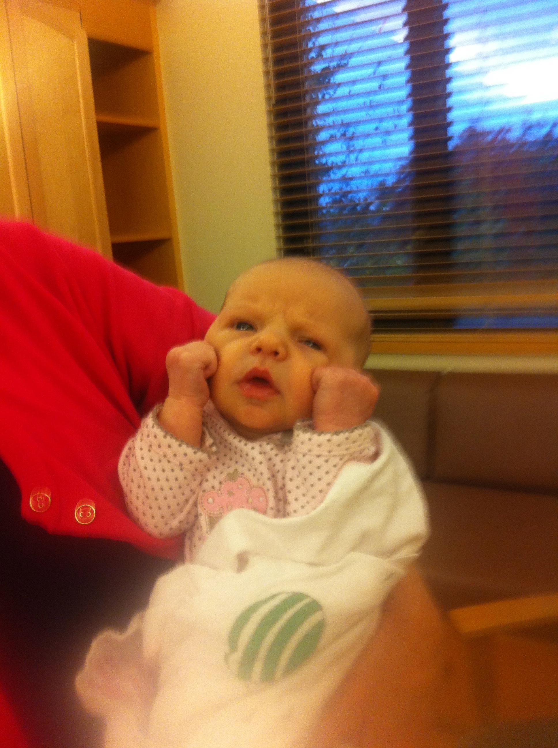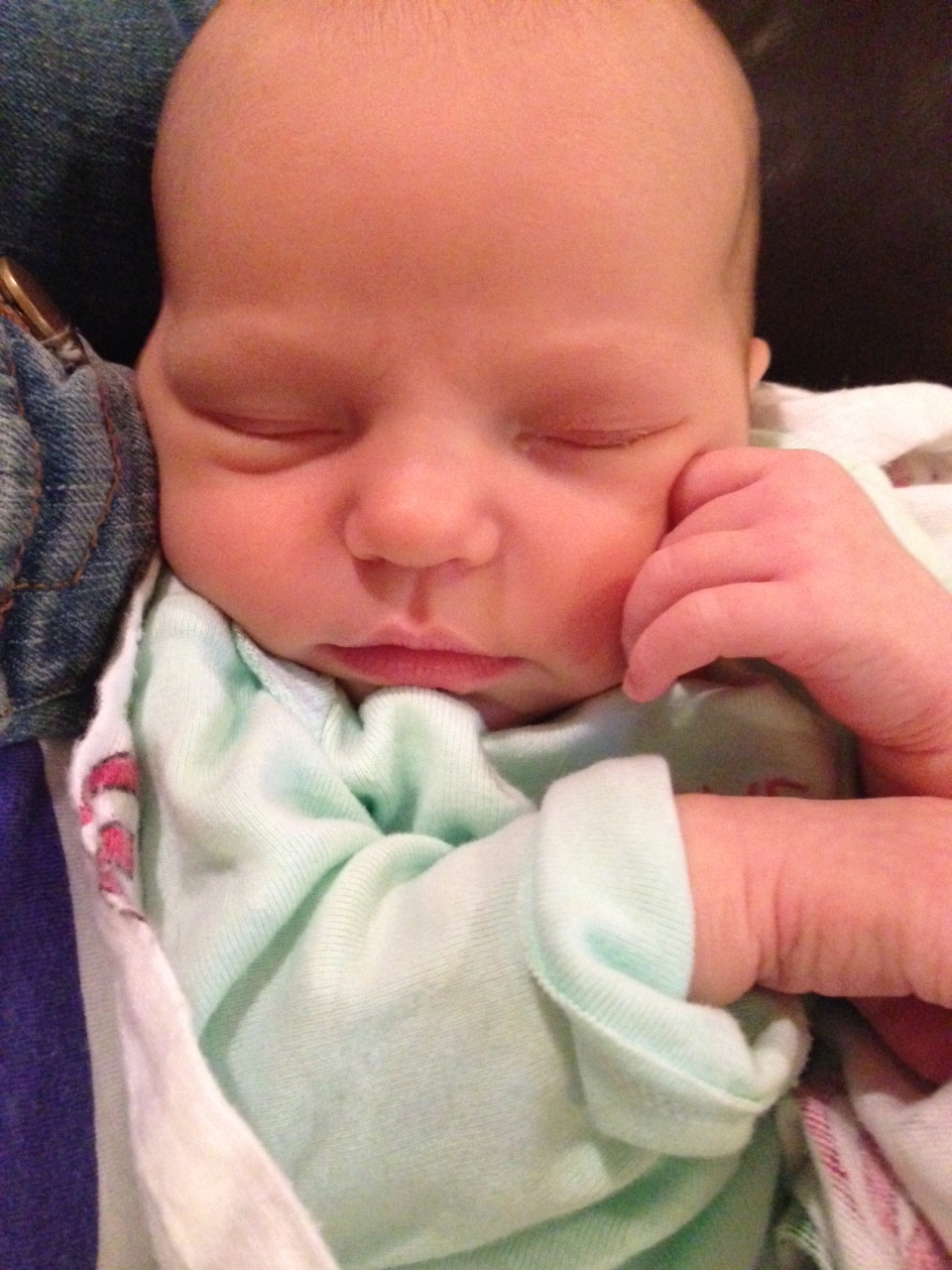 Sleeping/ Eating: Same Sleeping 12 am – 5 am, 6 am -9 am. I hope in the next few weeks we can get her to go to bed earlier. She is pretty consistently a three hour little clock. Eating is the same half feeding half formula.