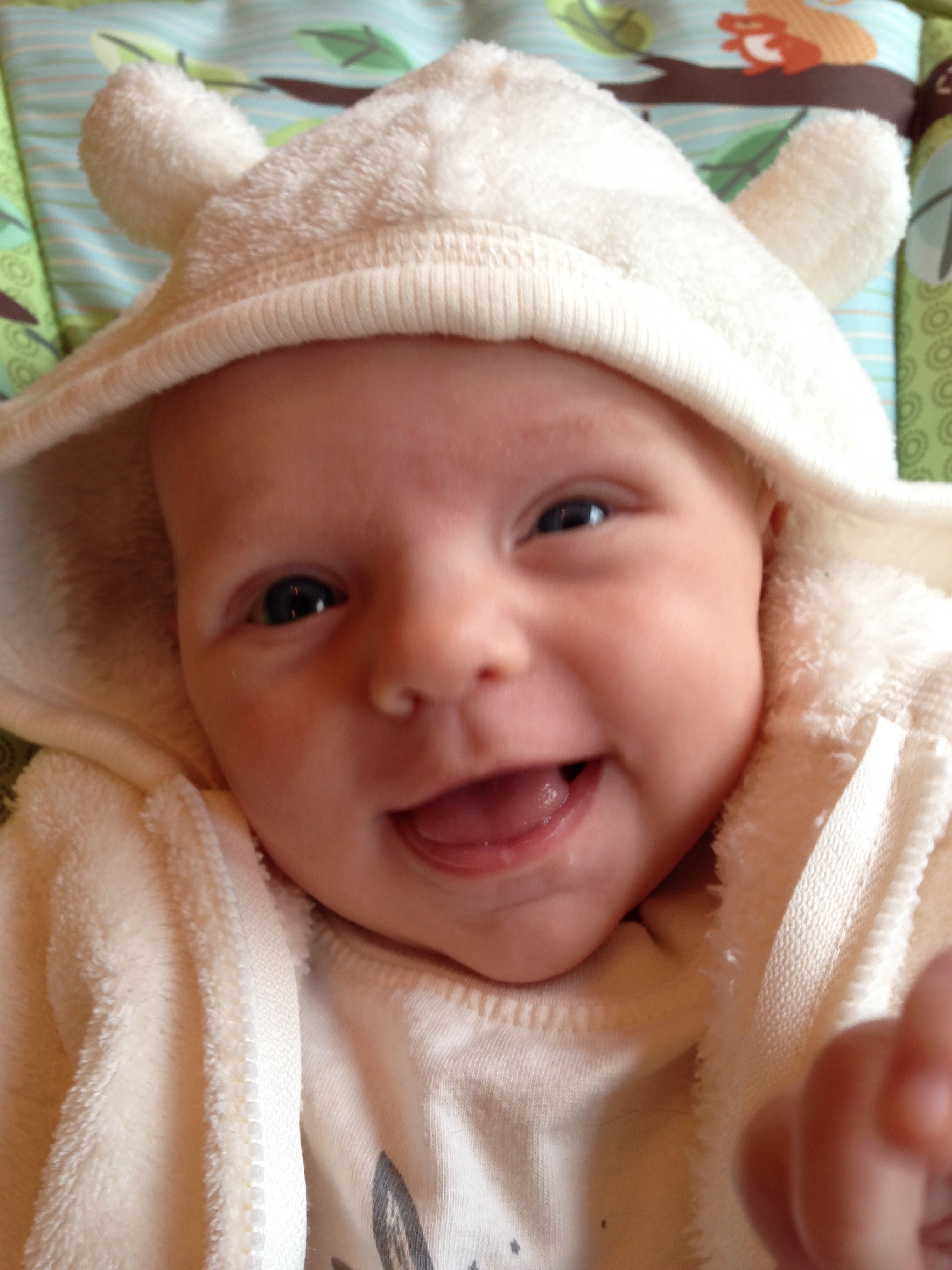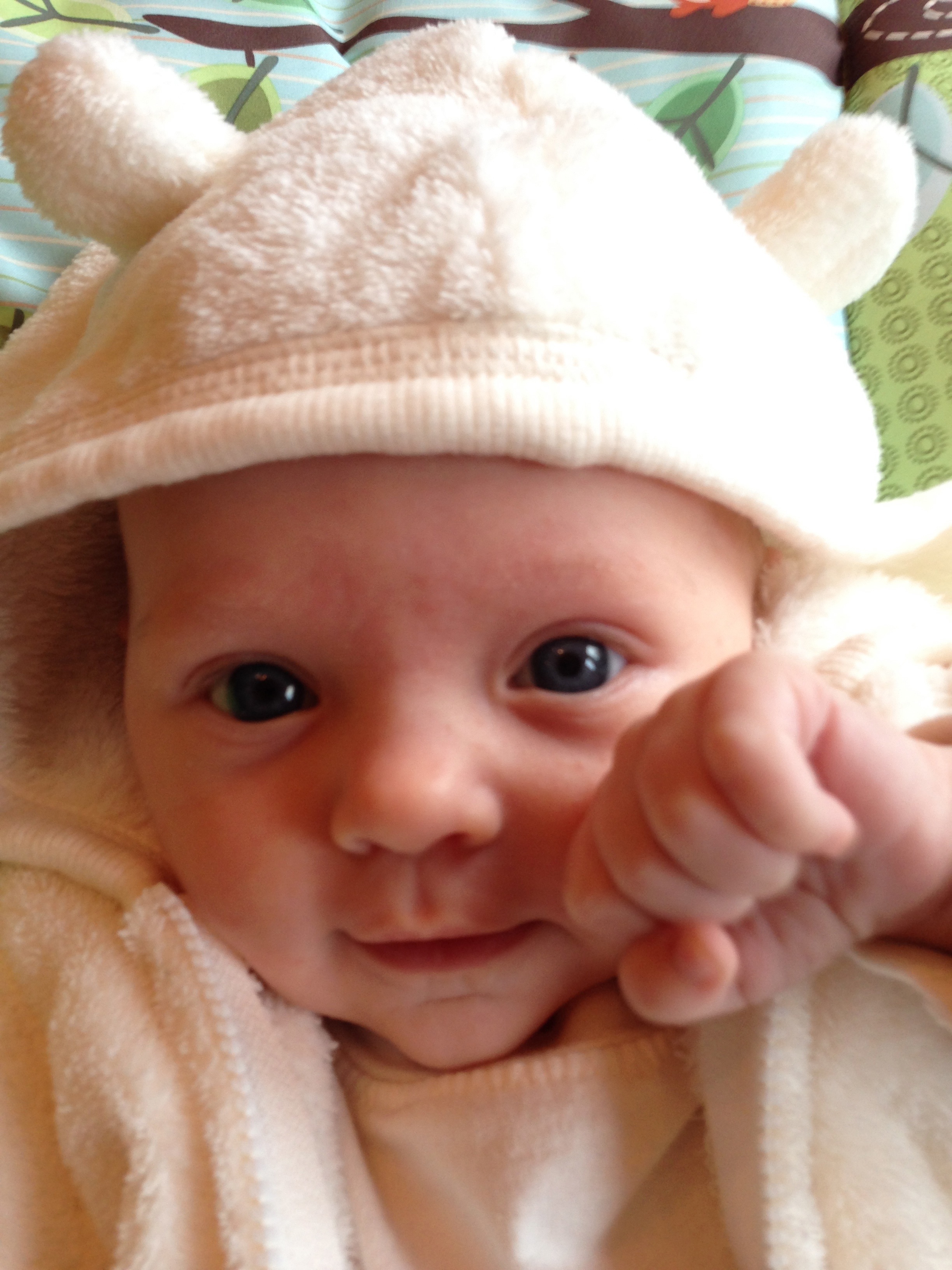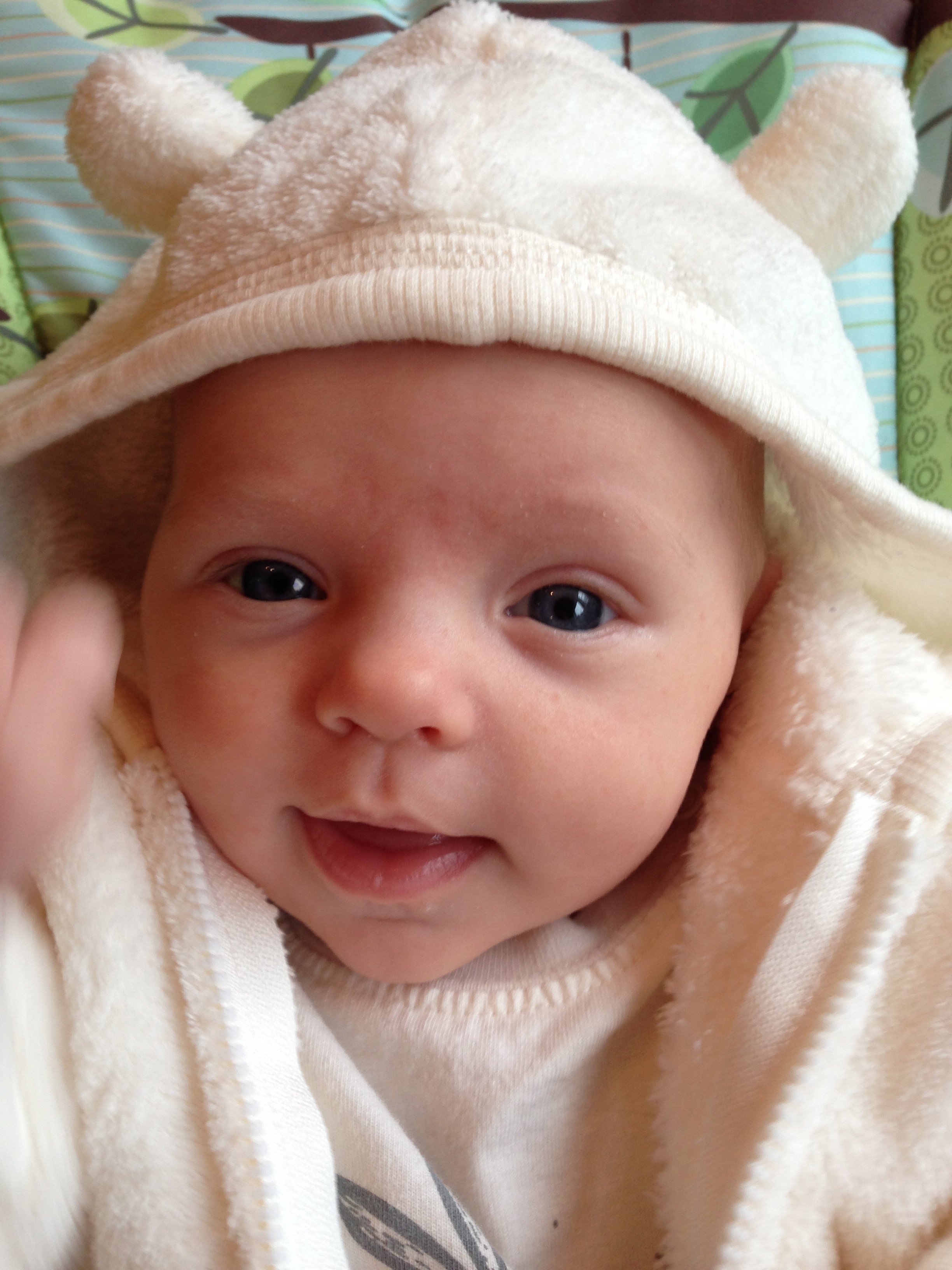 Avery’s Favorites: She still LOVES her bouncer chair. I think she can see everything better and we play in it several times a day. I noticed she started grabbing burp rags, blankets, and my clothes so I got her a wubbanub paci (pacifier attached to a stuffed animal). This little giraffe paci is now a favorite and it is much easier for her to get it back in her mouth on her own since she is holding the little animal. Towards the end of the week she noticed a rattle toy so we will see if she likes that more.