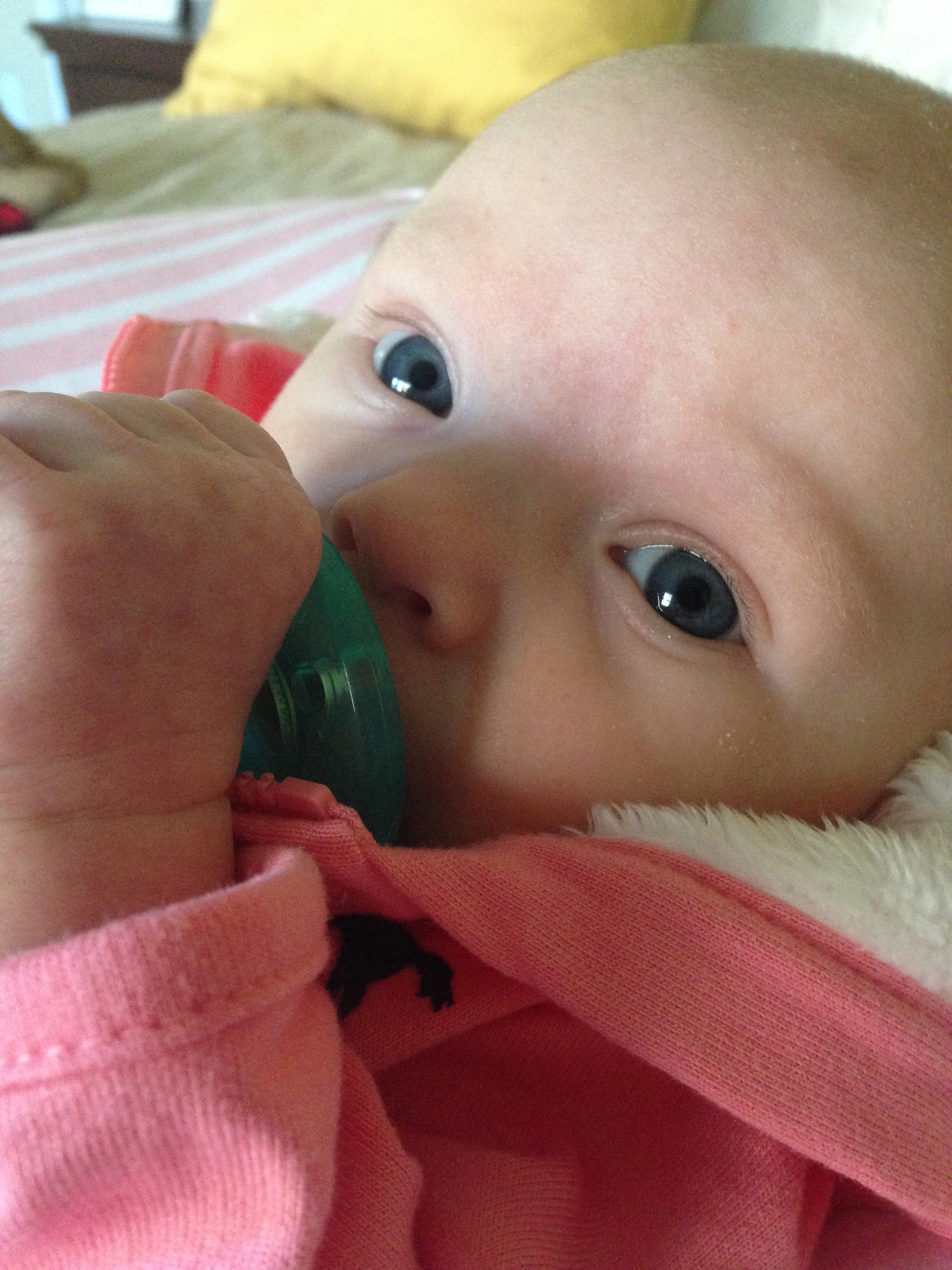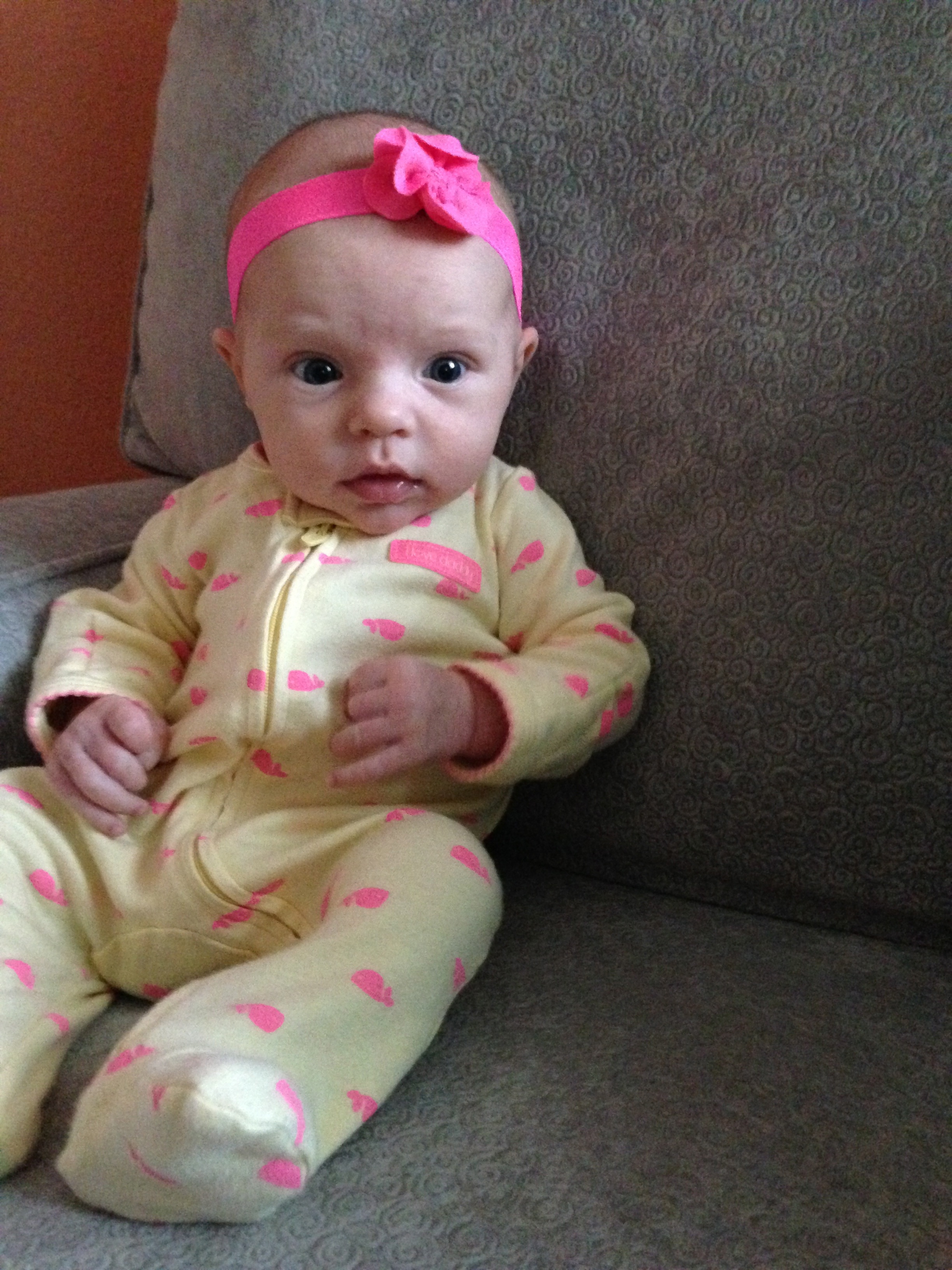 Milestones: She wasn’t weighed this week, but little lady is definitely getting heavier.