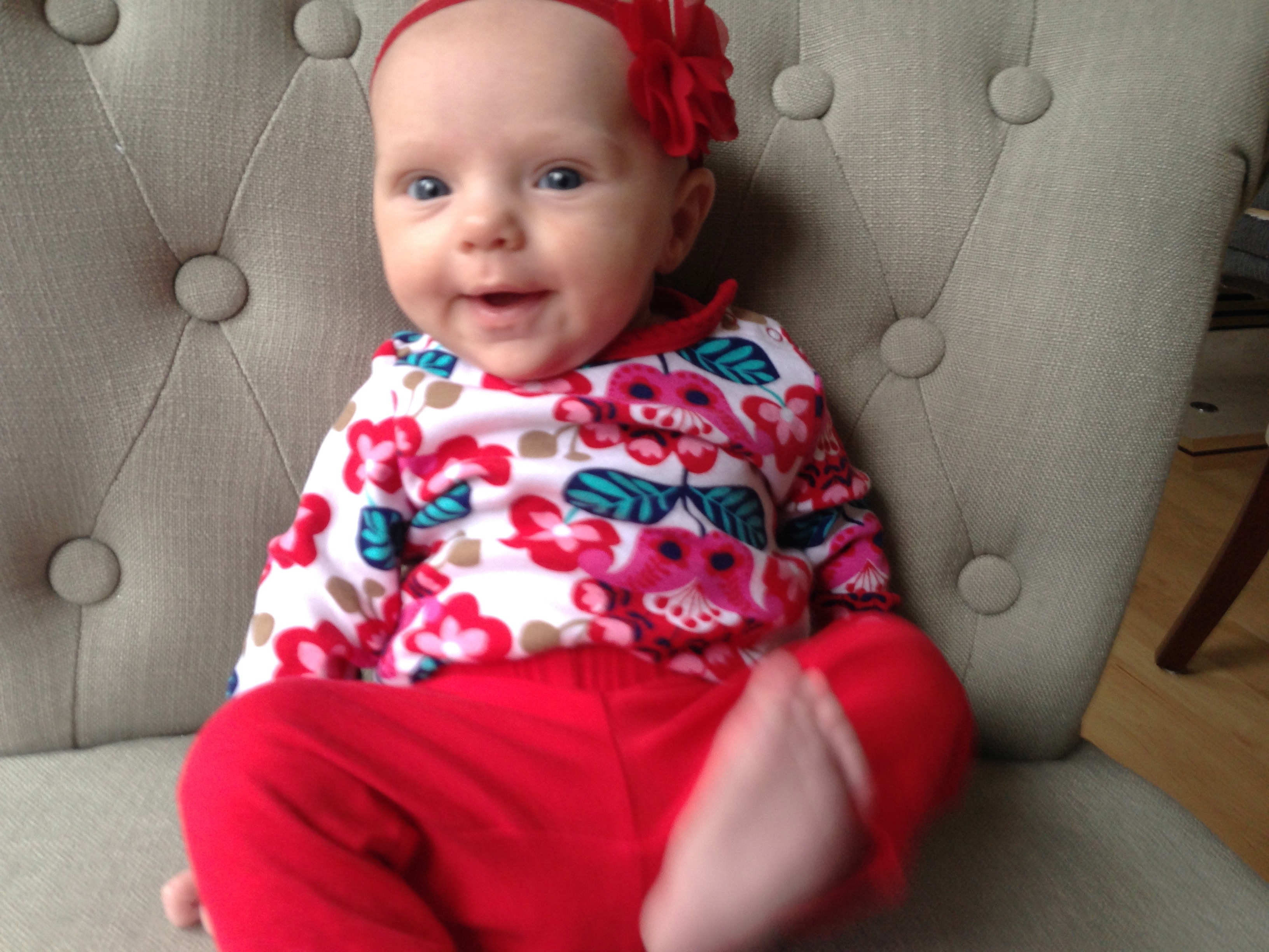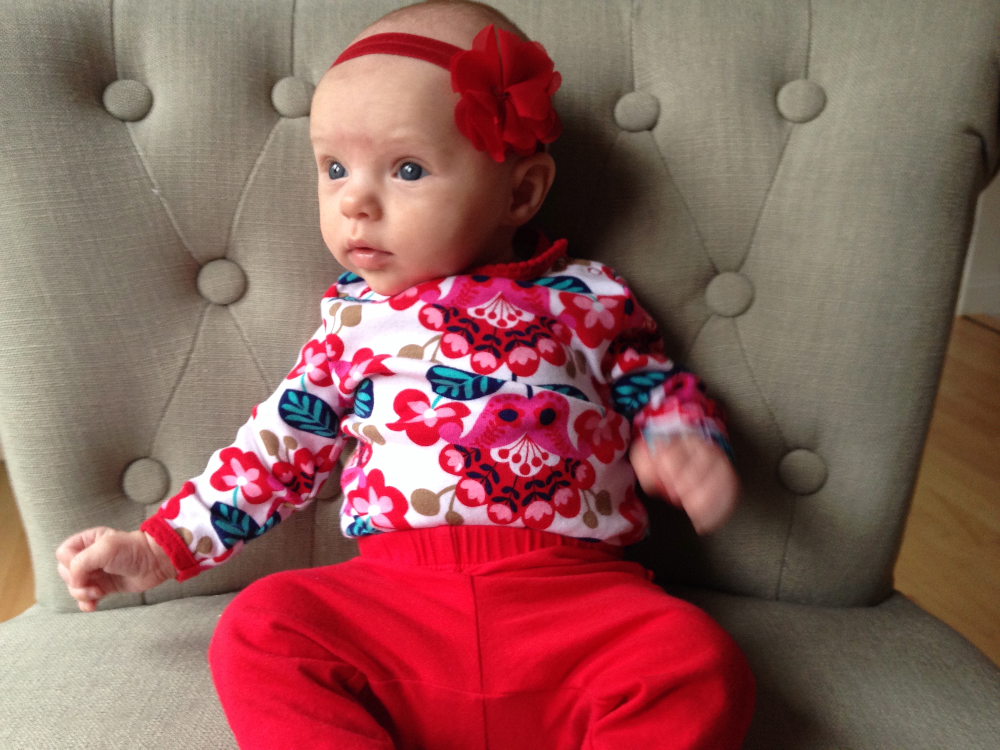 Clothing: Starting to fill out some of the 3 month old clothes instead of swimming in them. We went to an outlet mall and there were so many cute baby clothes… seriously I am going to have 2 outfits and she will have all the cute stuff in this house.