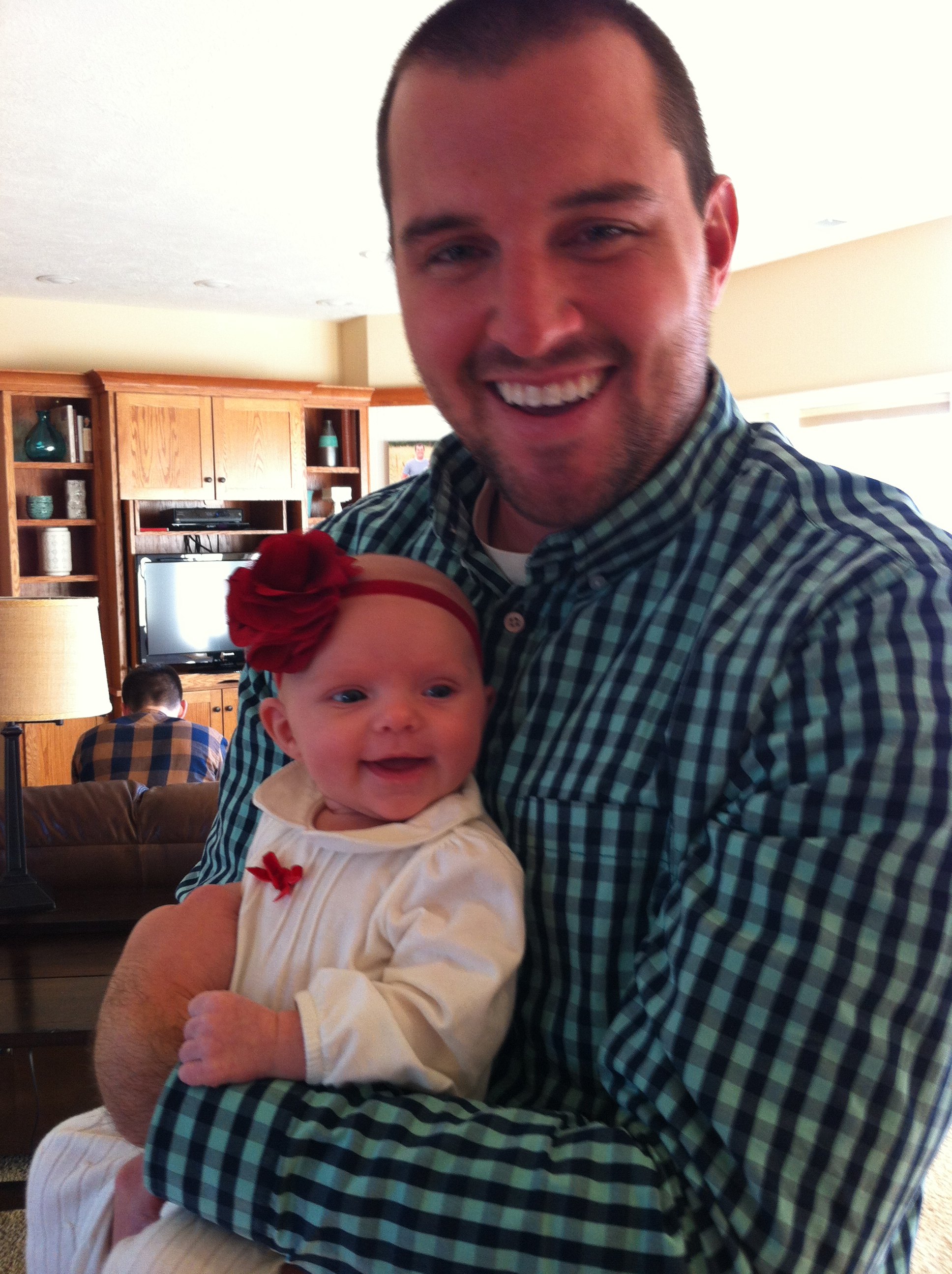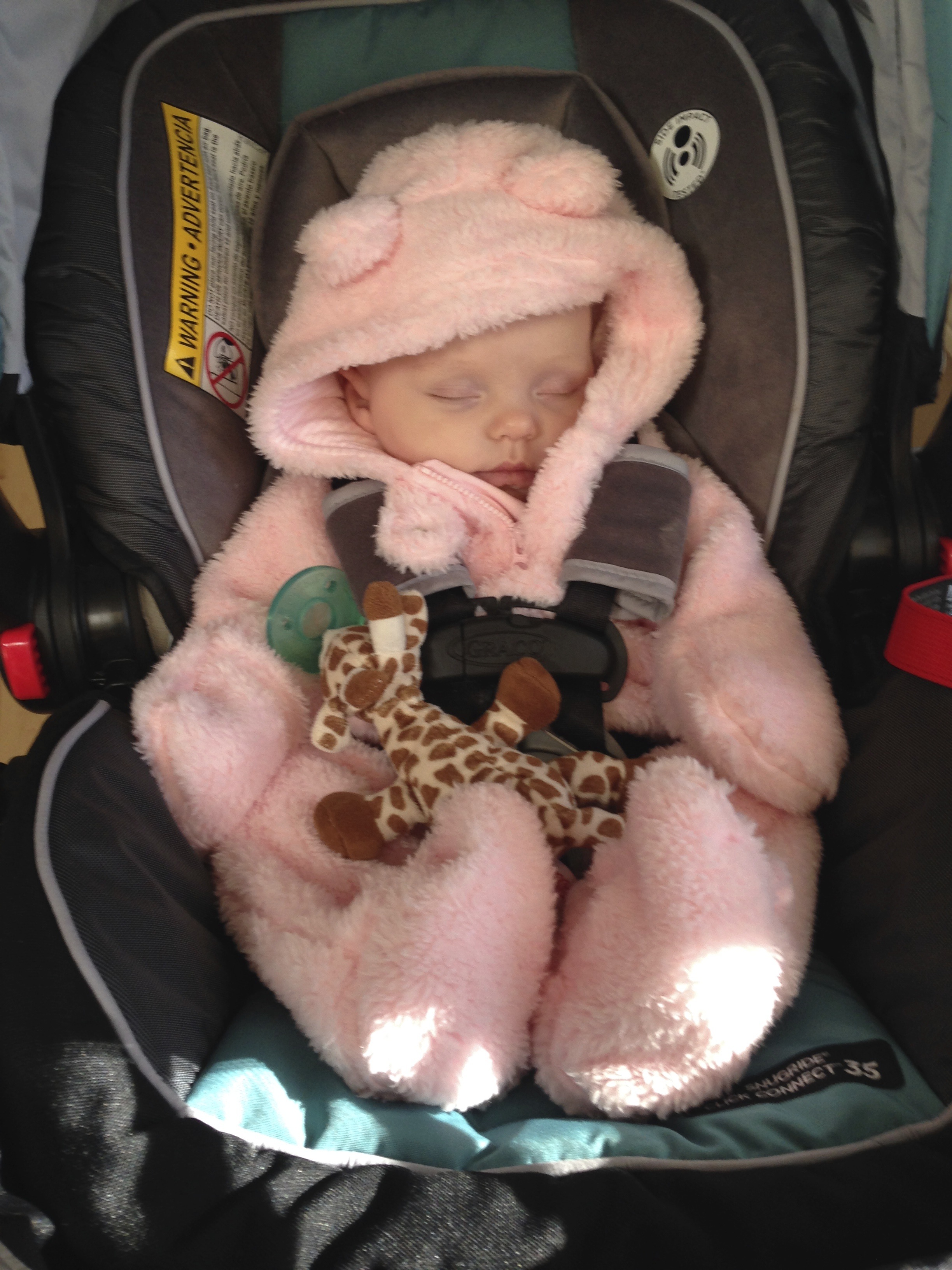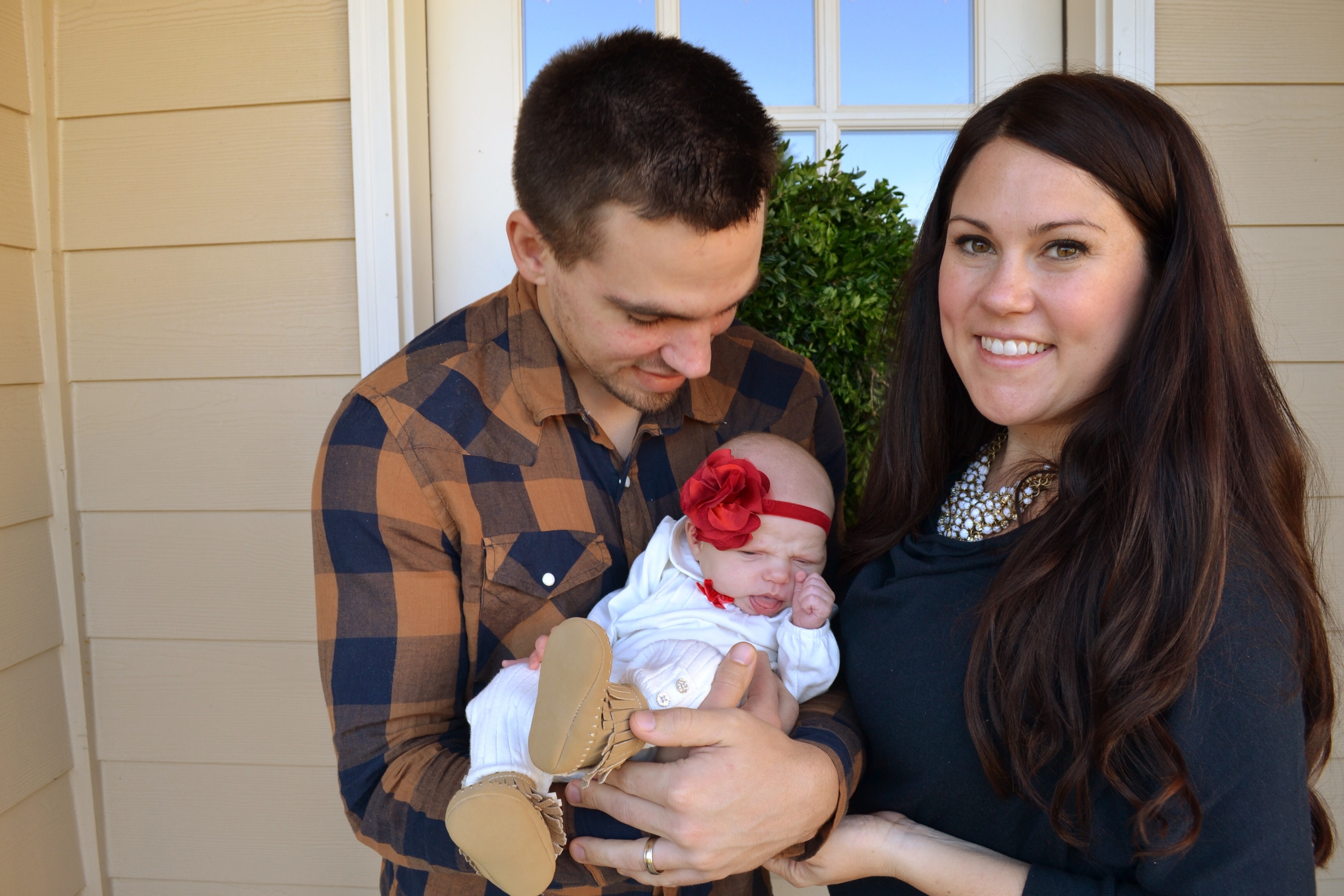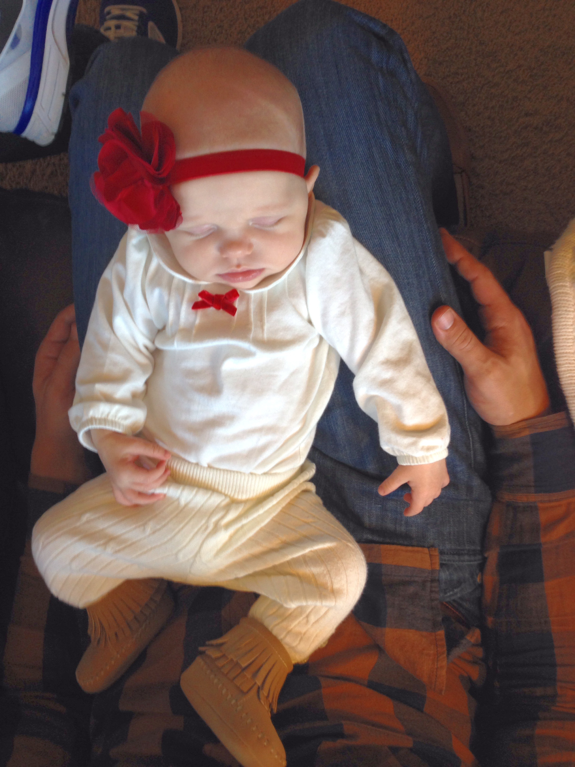 We got together with Friends who live in a different stat and Avery got to meet another baby friend that had the same due date that she had. It was so interesting to see the differences in them. Avery is lucky to be born at the same time as a lot of little girl babies. It was so magical to have Avery’s first Christmas Eve and Christmas. We dressed her up in a cute Christmas dress and she got some adorable presents from family. She obviously had no idea it was different than any other day, but it was special to share this holiday with her. We went to an 8 pm church service downtown where we had to park in a structure, walk a ways, and wait outside to get in. Then she had to have a bottle right when we got there and then needed a diaper change badly. It was all worth it to see her look around the service and listen to the Christmas music and look at the lights on the screen. Each year as she begins to understand the meaning of Christmas it is going to be more special to our family. Christmas Day we had Tyler’s family over for a brunch then hung out together and went on a family walk. At the end of the week my parents and sister came to visit sweet Avery. Sharing Avery with friends and family is such a joy.