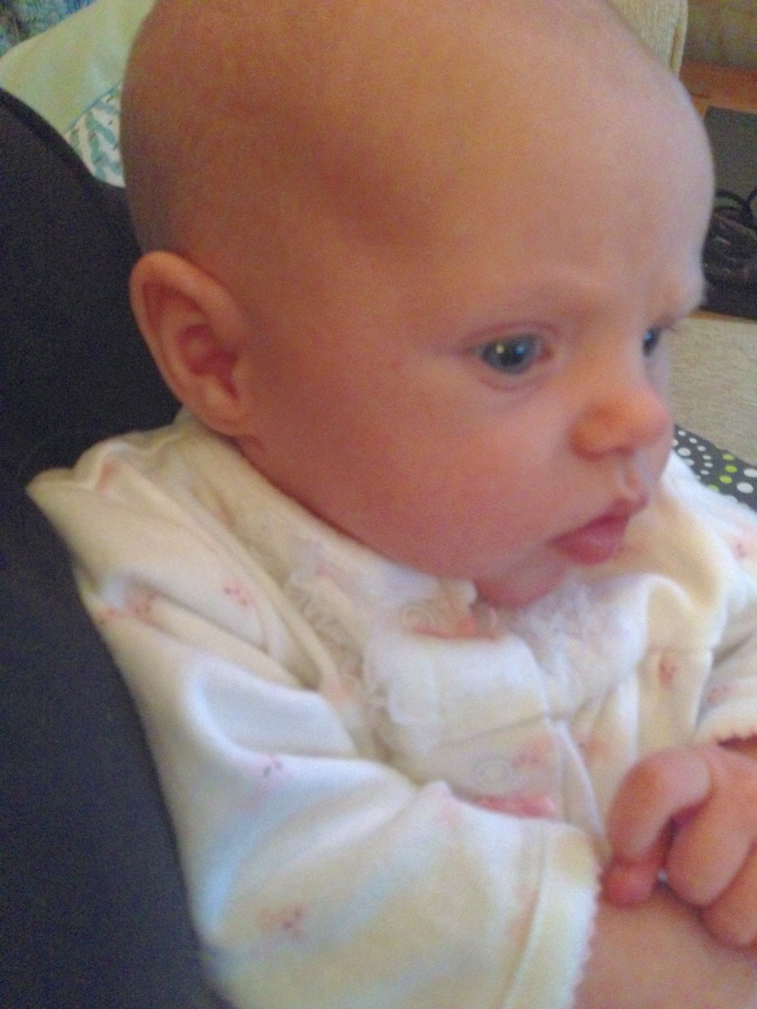 Sleeping/ Eating: She has been going to bed closer to 12 am again and wanting to wake up at 8 am. I think she is going through a growth spurt, because she is much hungrier than she has been the last few weeks. Same eating half feeding and half formula.